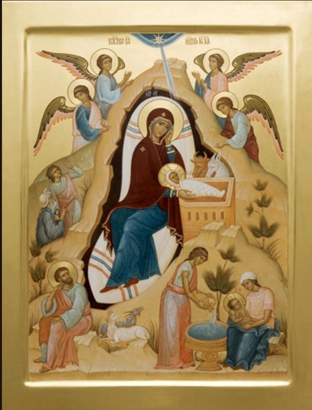 Рождество́ Твое́, Христе́ Бо́же наш,/ возсия́ ми́рови свет ра́зума,/ в нем бо звезда́м служа́щии,/ звездо́ю уча́хуся,/ Тебе кла́нятися Со́лнцу Пра́вды,/ и Тебе́ ве́дети с высоты́ восто́ка:// Го́споди, сла́ва Тебе́.